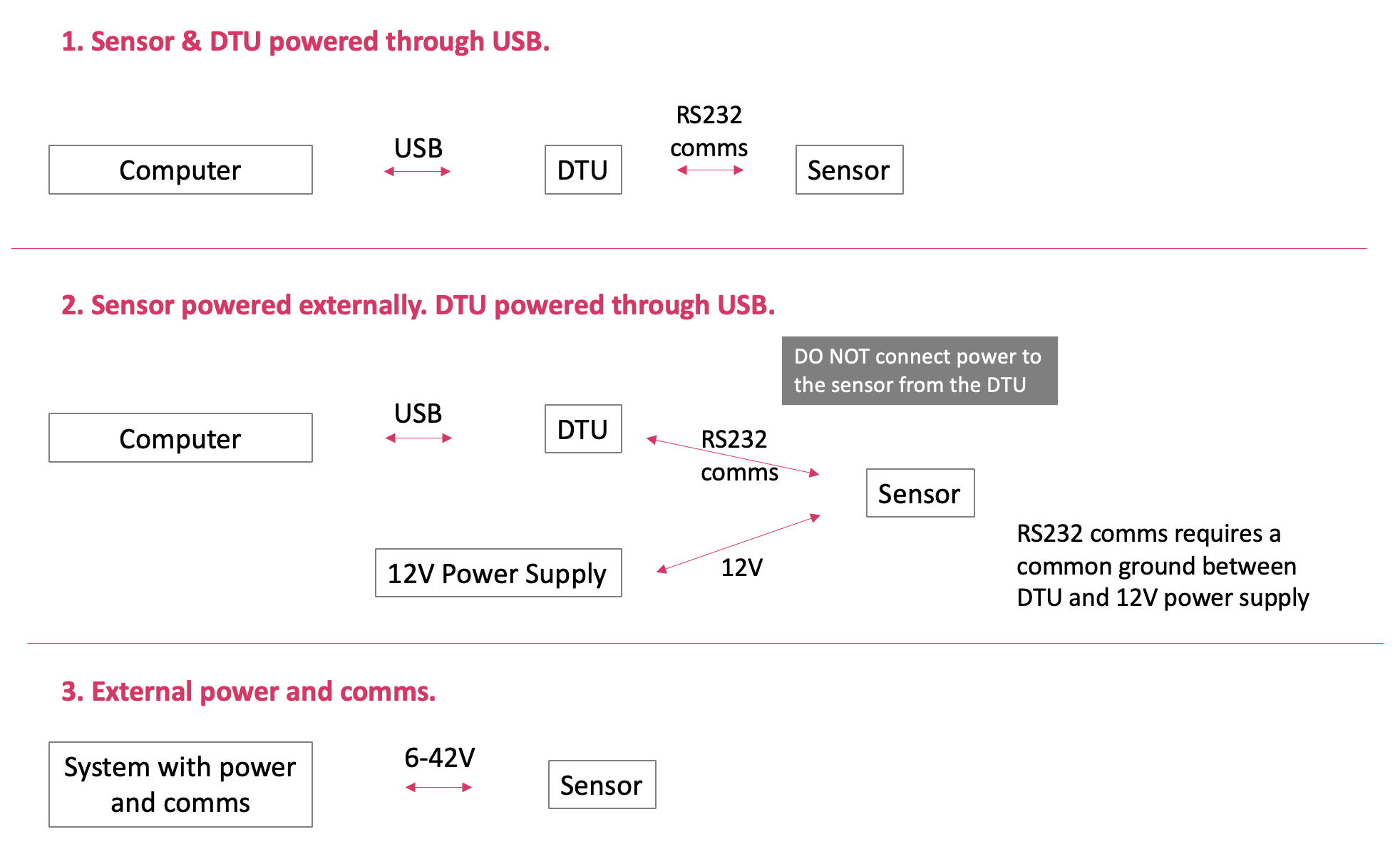 There are three methods to power and communicate with your sensor: