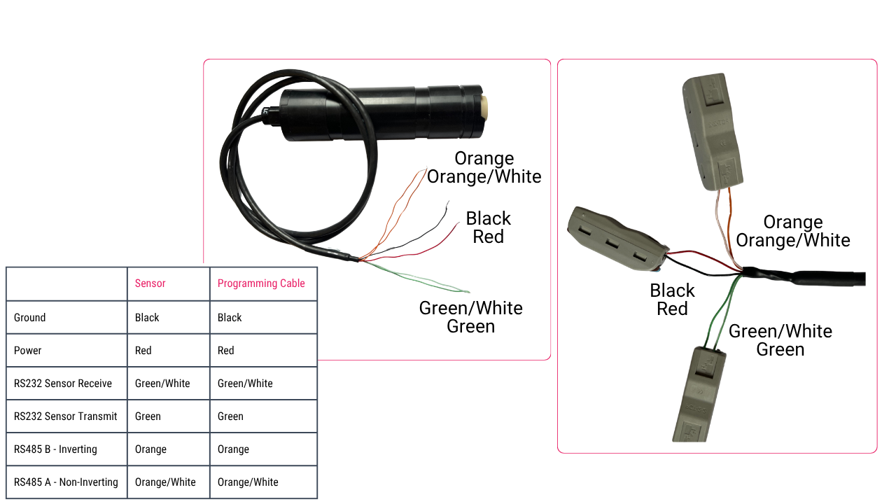 Sensors terminated with a 6-core pigtailed cable should be connected as shown in the diagram below.