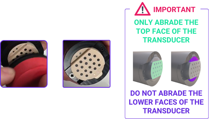 - Wash the transducer and wipe with a clean cloth after abrasion